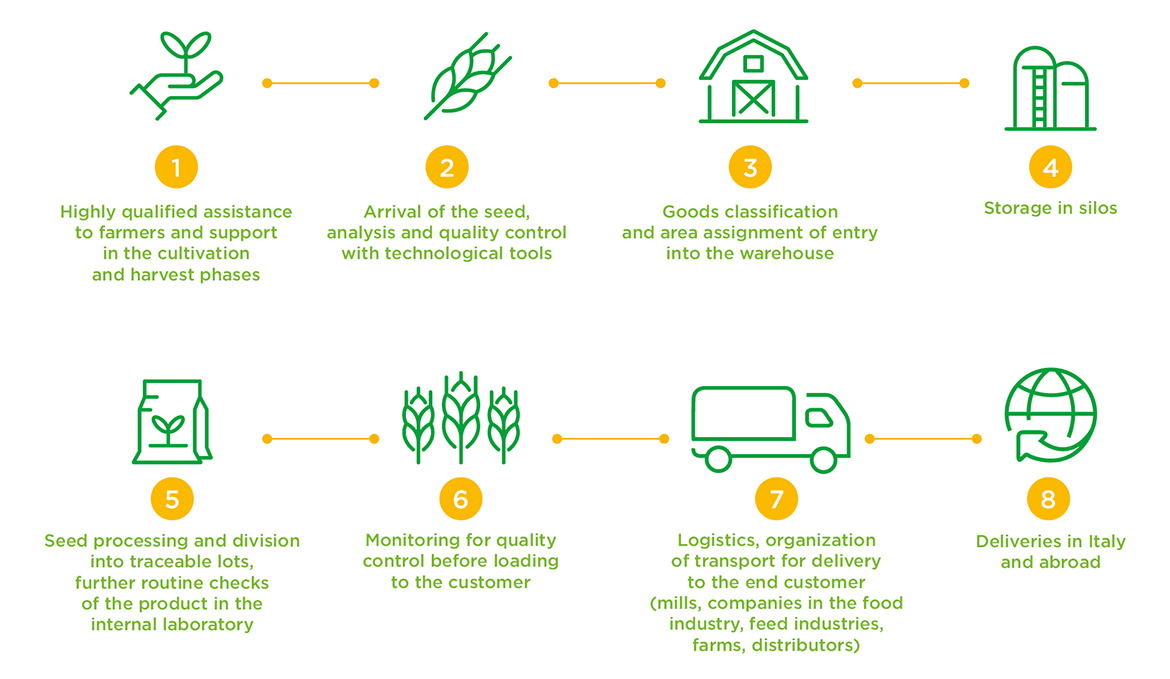 In 1969 Copse, i.e. Cooperativa Produttori Sementi Elette (Cooperative of selected seeds producers) was created which pooled together resources and energy in the production and commercialisation of seeds. In 1994, Agroservice Spa was founded and took over the plant’s activity as well as the brand name.